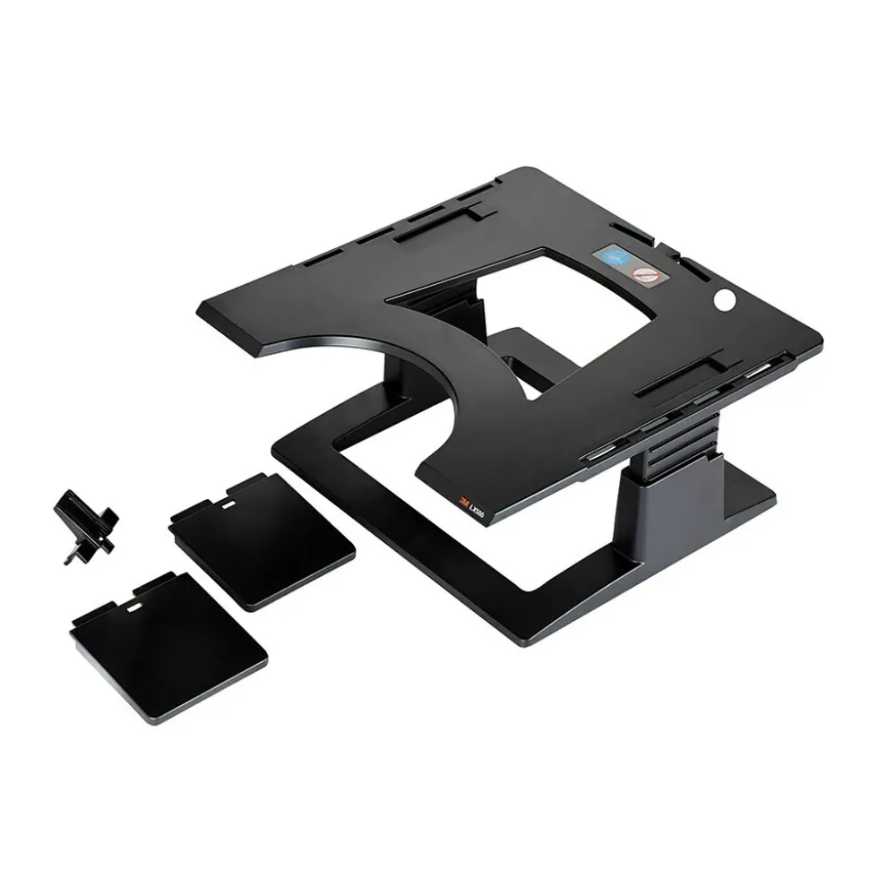 - Includes side shelves for accessories and an adapter for the 3M DH445 Document Holder (sold separately)