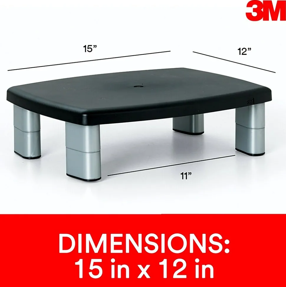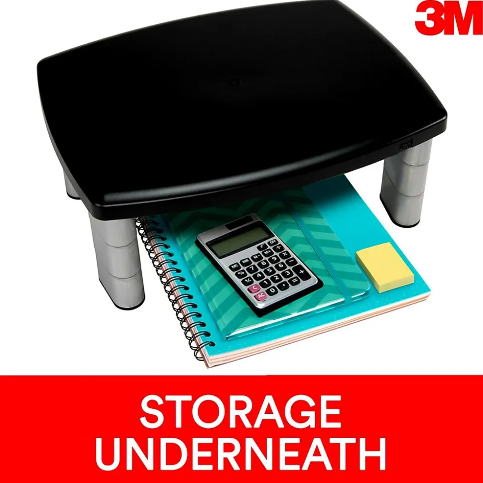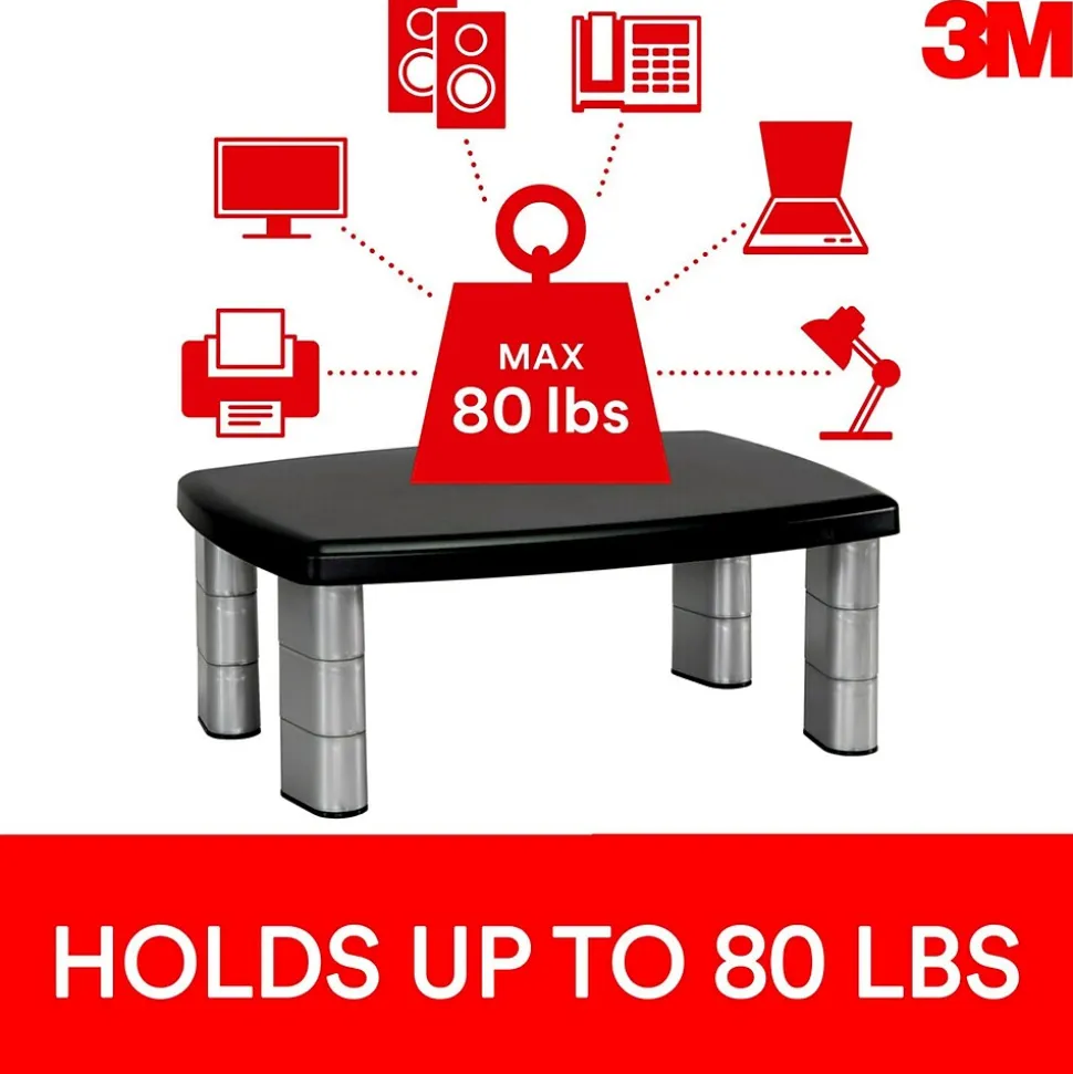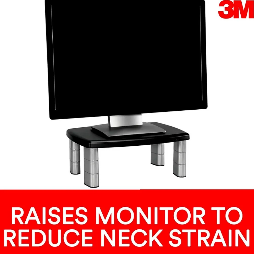 Contemporary design with stacking columns raises monitor from 1″ to 5 7/8″ in increments of 1 5/8″ to an ergonomically correct level. Features 11″ of storage space underneath to maximize desk space. Great for laptops, printers or monitors up to 80 lbs. No skid base keeps stand in place.