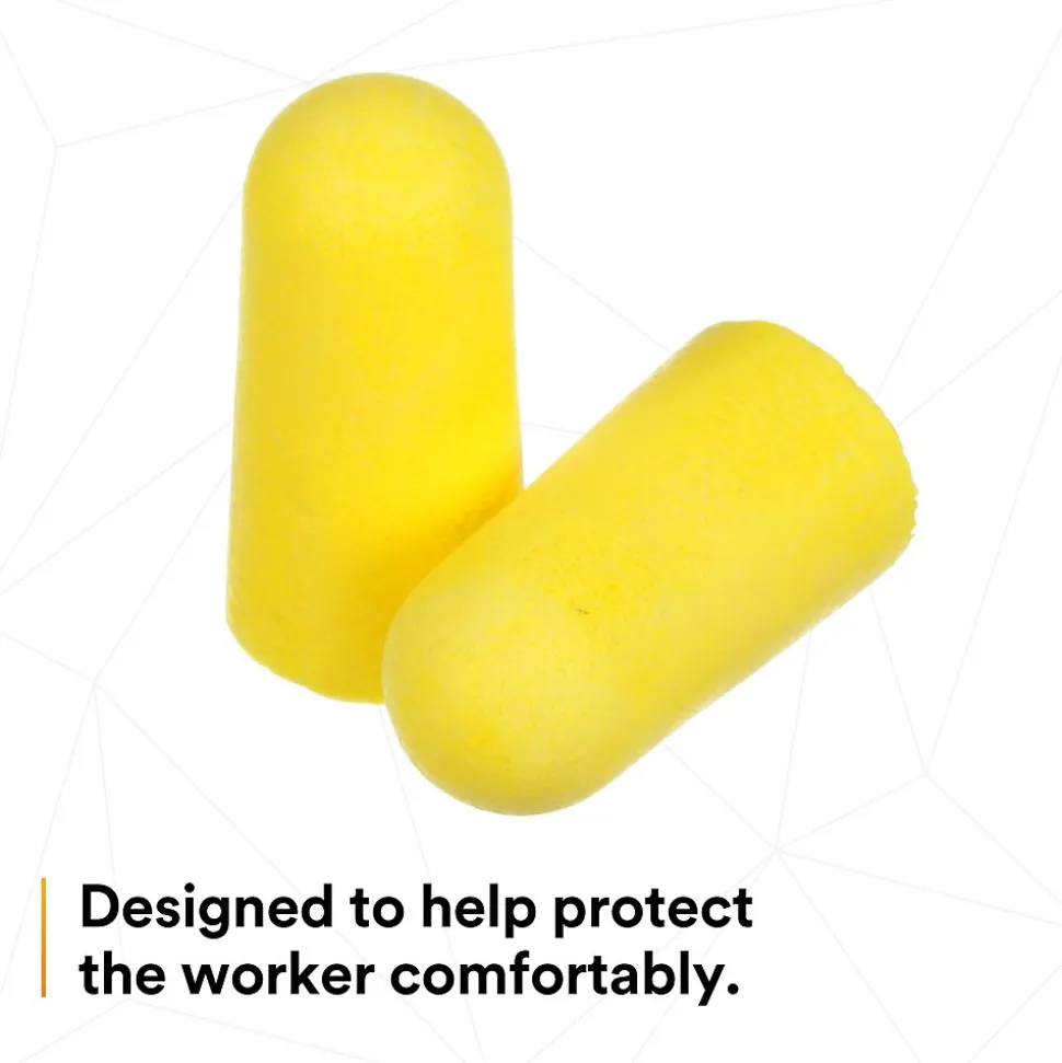 3M E-A-R TaperFit 2 corded ear plugs provide a comfortable, individualized fit and excellent attenuation. Its smooth foam expands in the ear canal to help provide comfortable hearing protection. The TaperFit 2 Ear Plugs feature a tapered design that easily and comfortably fits into the ear to help reduce your noise exposure. Simply roll the earplug between your fingers, insert it in the ear canal. The low-pressure foam expands for a snug yet gentle fit that helps block high noise levels. Bright yellow color allows supervisors to conduct a quick visual hearing protection compliance check. Recommended applications include assembly and mechanical, chipping, chiseling, cleaning, drilling, furnace operations, grinding, heavy equipment operations, machining, metal repair, painting, pouring/casting, power fastening, riveting, sanding, sawing and welding. These earplugs are commonly used in the following industries: agriculture, automotive, chemicals, construction, general manufacturing, healthcare, oil and gas, and pharmaceuticals.