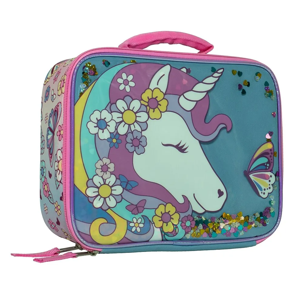 This Accessory Innovations lunch box is perfect for everyone who love unicorns. The box is made of iridescent PU and offers a large main zip-around compartment with plenty of room for sandwiches, drinks, snacks, etc. Fully insulated with waterproof lining and has a padded carrying handle for comfort.