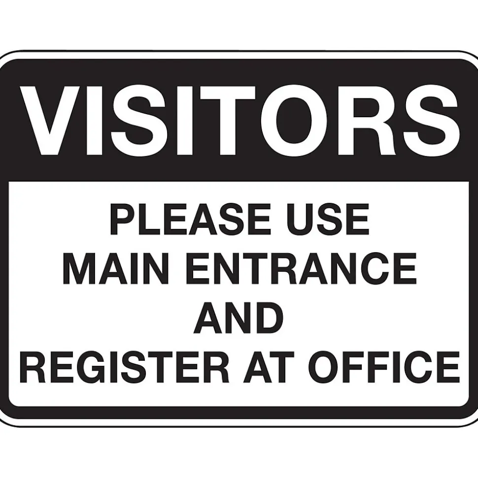 - Legend: “VISITORS PLEASE USE MAIN ENTRANCE AND REGISTER AT OFFICE”