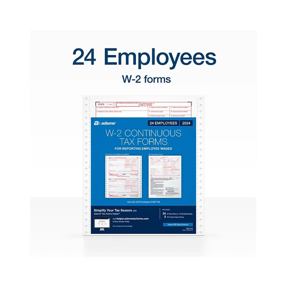 - Pack contains 24 W-2 form sets, three W-3 summary forms