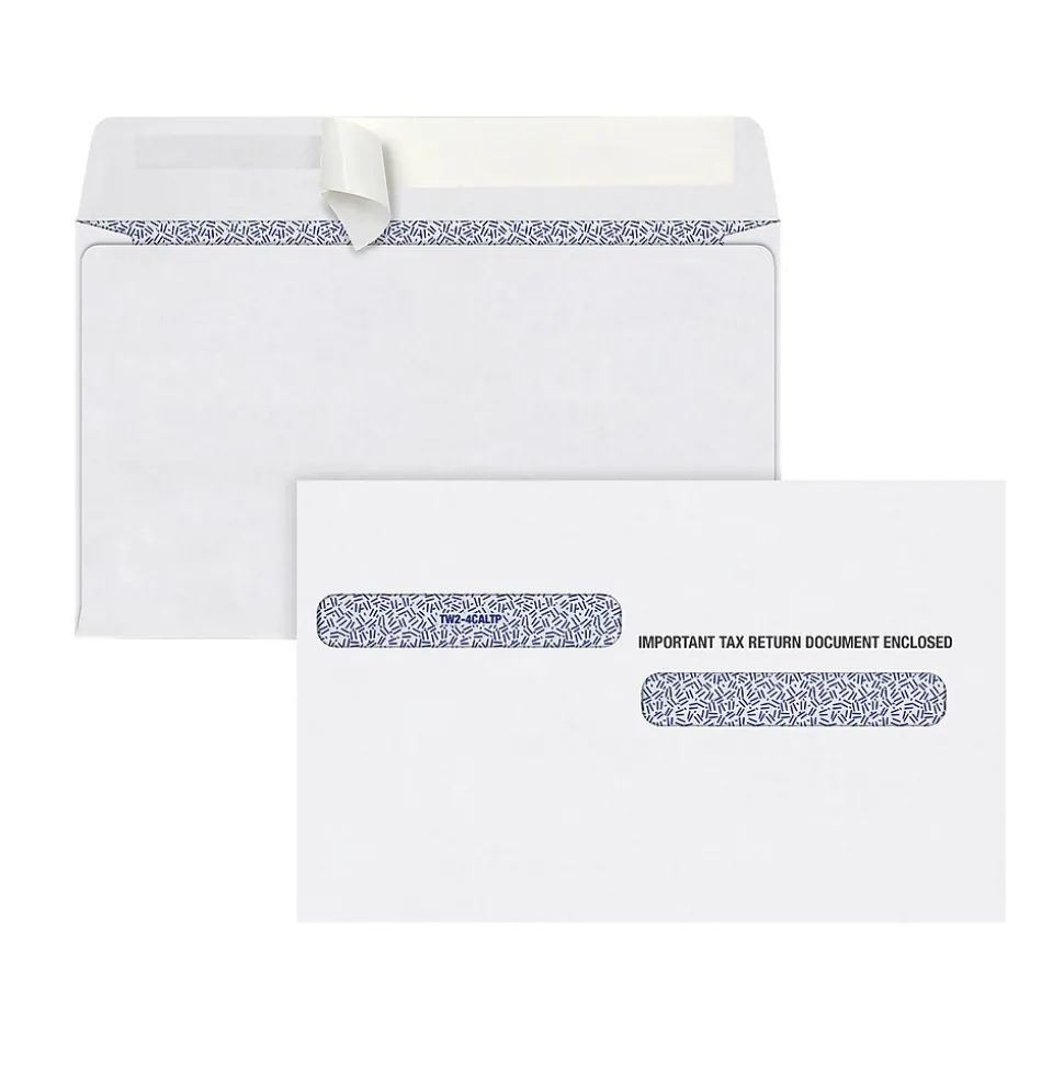 - Simple, high-quality double-window envelope for W-2 tax forms (four-up forms per sheet in four-corner style)
