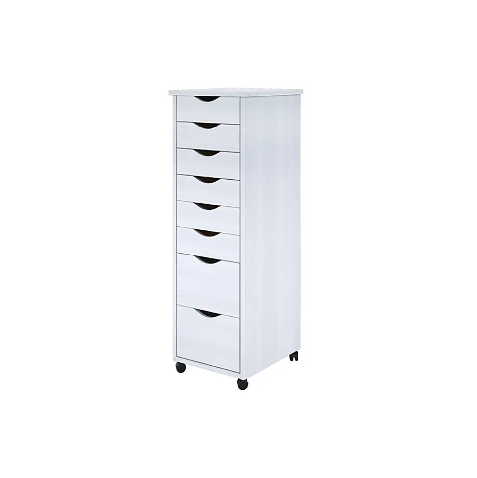 This eight-drawer roll cart on wheels features deep drawers to hold reams of paper or drills. Perfect for project rooms, kitchens, garages, offices, or end tables.