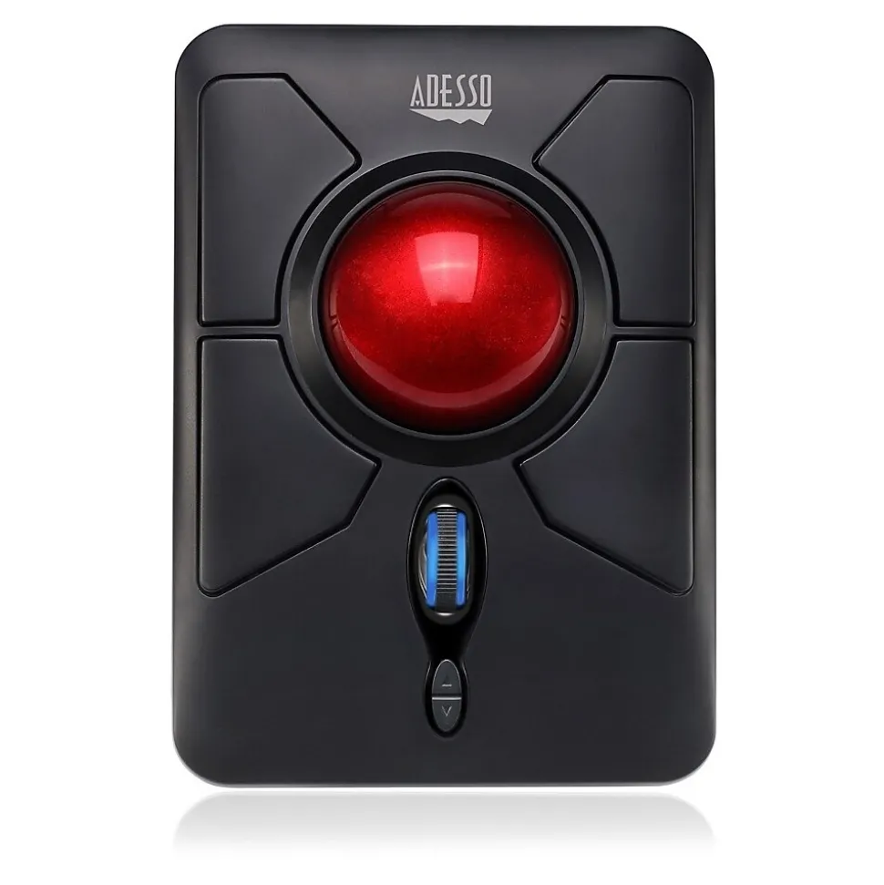 Meet one of the newest models of the Adesso Trackball product line, the Adesso iMouse T50. This device is cable-free by utilizing the 2.4 GHz radio frequency technology, offering a wireless range of up to 30 feet. It’s also fully programmable, meaning every mouse button can be customized to your preferred function with its programmable driver. With its 5 levels of DPI resolutions (400-4800), the optical trackball provides superior accuracy and smooth motion, reducing hand movement and space. This mouse trackball is also easy to maintain – just push trackball outward from back, clean and push it back in place. Its ergonomically contoured 2″ large size trackball and adjustable leg stands further completes its ergonomic advantages, making your daily computing tasks more comfortable and stress-free.