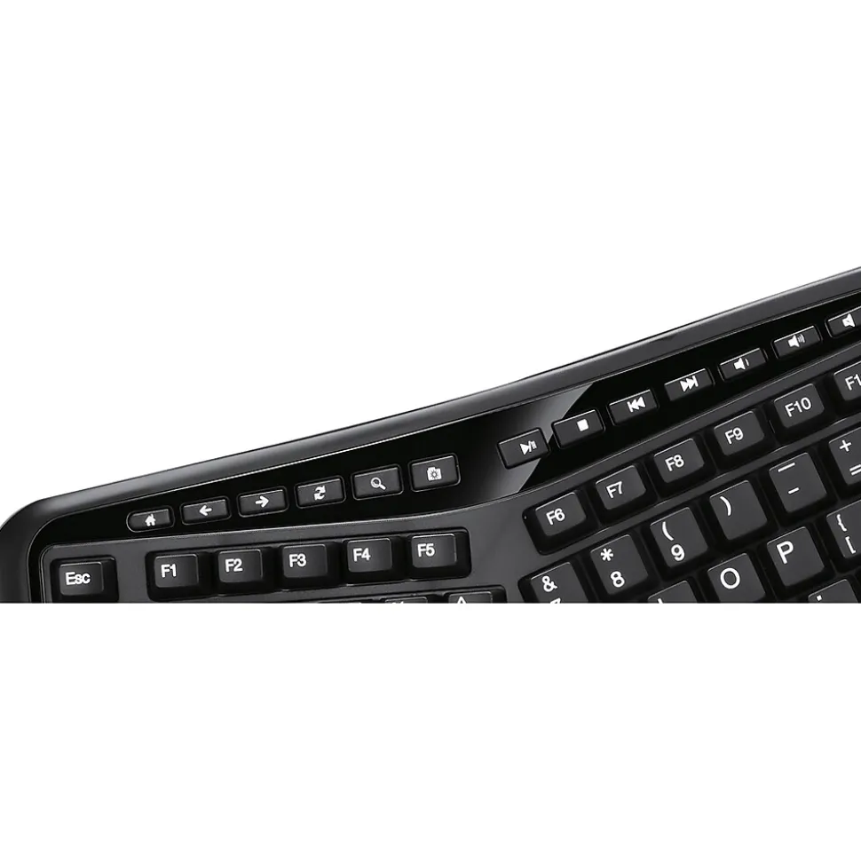 The Adesso 2.4GHz Wireless Ergonomic Touchpad Keyboard offers you an advanced input device with ergonomic design, multifunctional features and a wireless range of up to 30 feet. The design of this keyboard with splitted key zones and gently sloped encourages natural position of hands, wrists, and forearm in maximum comfort for long use. The keyboard also features an integrated touchpad which can take the place of your mouse, making it easier to control the movement of the cursor on your personal computer.