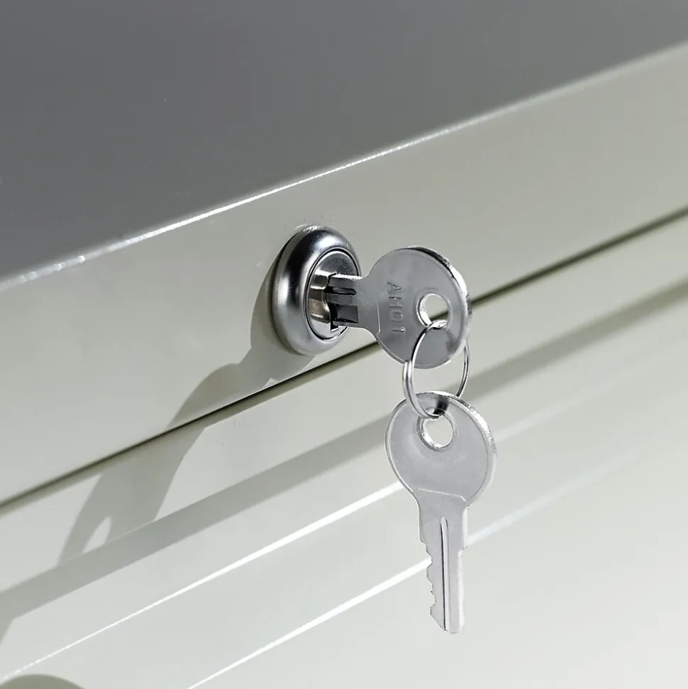 - Anti-tipping interlock system allows only one drawer to open at a time, single key core removable lock with two keys