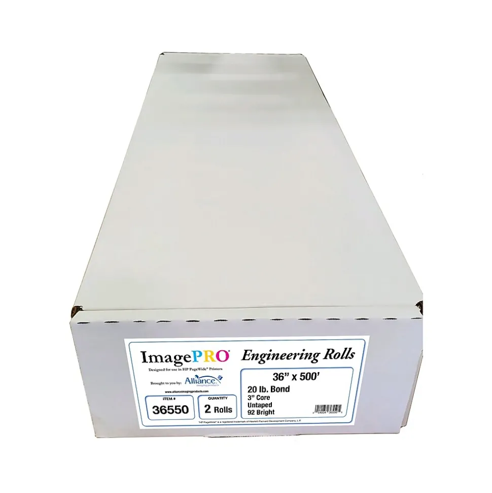 The Alliance ImagePRO wide-format treated bond roll is made of high-quality bright white paper that produces crisp, vivid images that are easily readable and longer-lasting.