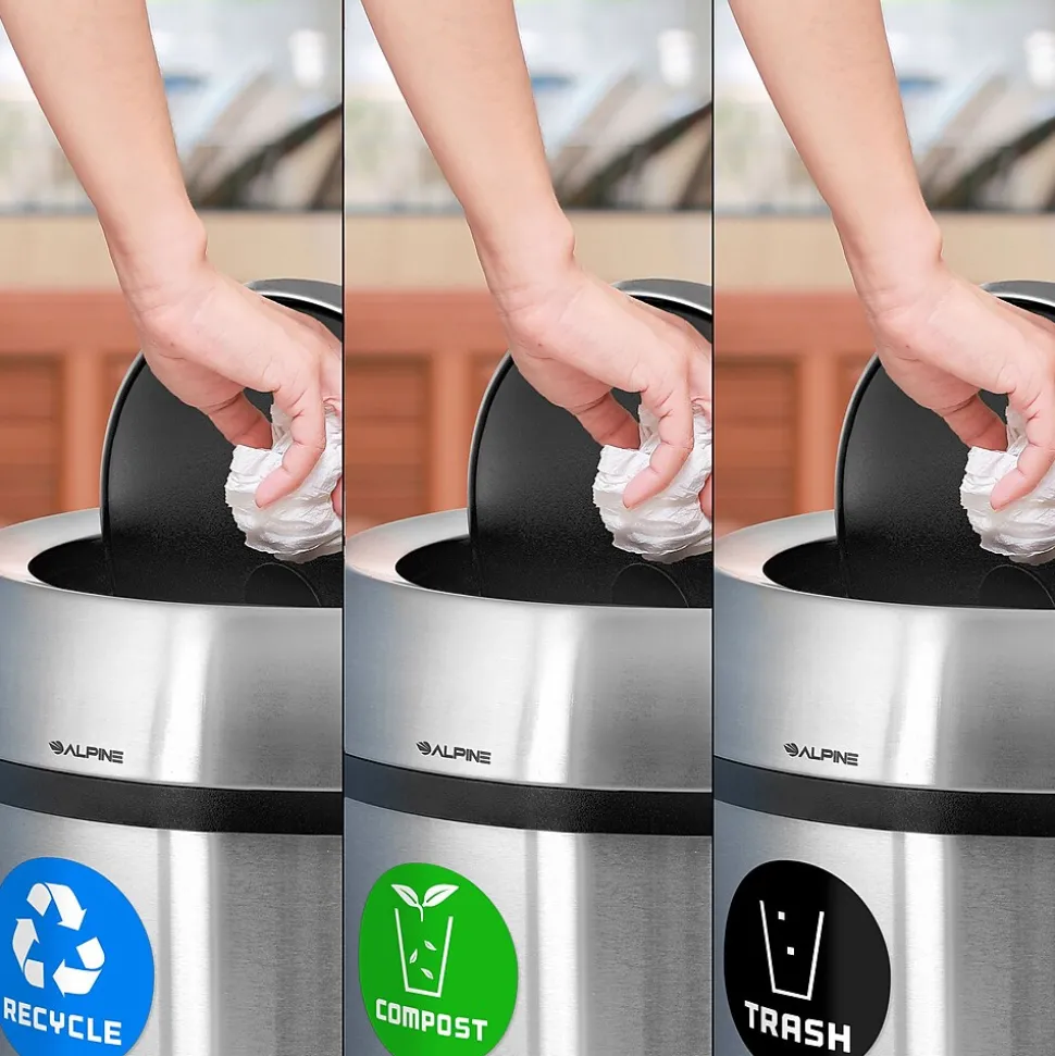 When equipping your business’s interior with a waste receptacle, you want to be sure it will survive constant daily use and add to your company’s aesthetic. The Alpine Industries modern 34 gal. stainless steel trash/recycling station provides you with a long-lasting solution to help you maintain cleanliness in your facility while adding a touch of modern appeal. The station comes with Trash and Recycling stickers to label the bins and ensure the waste goes into the proper stream. The swivel lids offer a seamless fit, concealing the trash bags, and can be easily removed when needed.