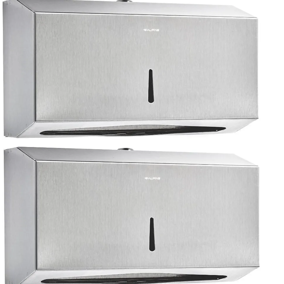 The Alpine Industries C-Fold/Multi-fold paper towel dispenser is ideal for high traffic restrooms, break rooms, food service facilities, health-care facilities and more. Made of durable 304 stainless steel with a brushed finish, features a lock to help prevent tampering and vandalism and a sight window on the dispensers front to monitor fill level. It’s equipped with a clear window on the front so you can monitor the level of paper towels inside and refill when necessary. Hardware is included in the package for easy mounting onto any wall. Set of 2.