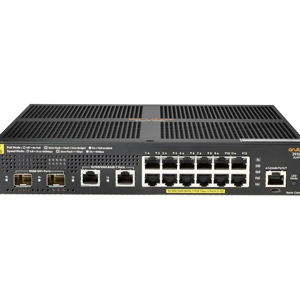 The Aruba 2930F switch series is designed for customers creating smart digital workplaces that are optimized for mobile users with an integrated wired and wireless approach. This convenient Layer 3 network switch includes built-in uplinks and PoE power and is simple to deploy and manage with advanced security and network management tools like Aruba ClearPass policy manager, Aruba AirWave, and cloud-based Aruba Central. This switch provides a convenient and cost-effective access switch solution that can be quickly set up with zero touch provisioning. The robust Layer 3 feature set includes a limited lifetime warranty.