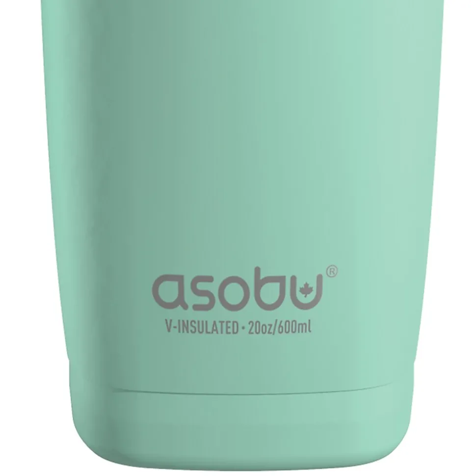 The Mint Green Aquilina from Asobu is a 20-oz., double-wall stainless steel tumbler, with a dual-purpose lid. It can accommodate either hot or cold drinks. Open the middle hole and insert the included straw for cold drinks. For hot drinks, use the flip-over lid covering. It keeps drinks cold up to 24 hours or hot up to 6 hours. It fits into a standard vehicle cupholder.