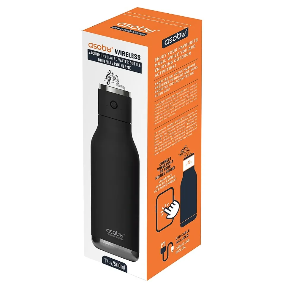 Bring your tunes wherever your next adventure takes you! ASOBU’s Black Wireless Speaker Bottle features a wireless speaker cap to pump up the volume while you stay hydrated. The double-walled vacuum insulated bottle keeps beverages cold for up to 24 hours, giving you plenty of time to play your favorite album on repeat. The IPX4 wireless speaker cap is water resistant, so you don’t have to worry if your adventures get a little too wild. And with an extended battery life, you can stay unplugged for hours.