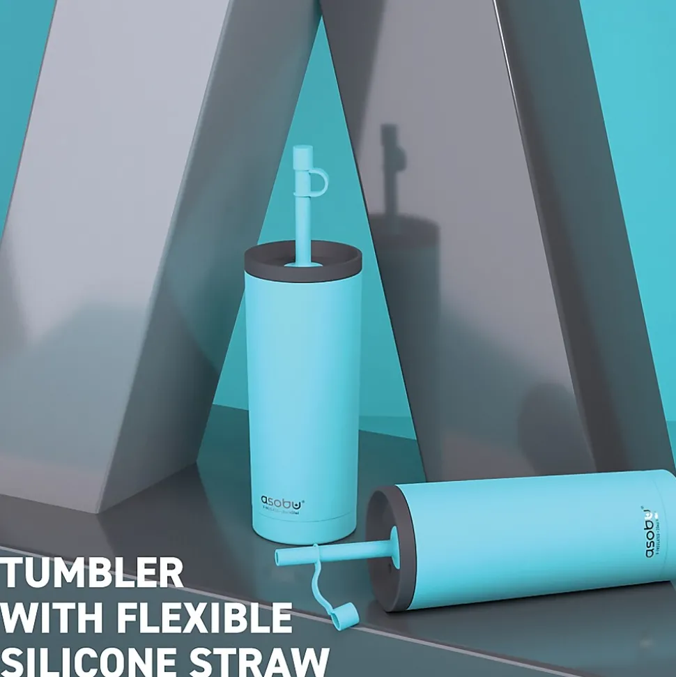 The Teal ASOBU 20 Oz. Super Sippy Insulated Coffee Tumbler lives up to its name! The body is a double wall, insulated cup, which means your beverage stays cold or hot for hours. The 2-piece straw has a bendable silicone top on the outside, while the rest of the straw is made of Tritan to ensure it performs effectively day after day. The wide screw-off lid makes it easy to fill with liquid and ice cubes.