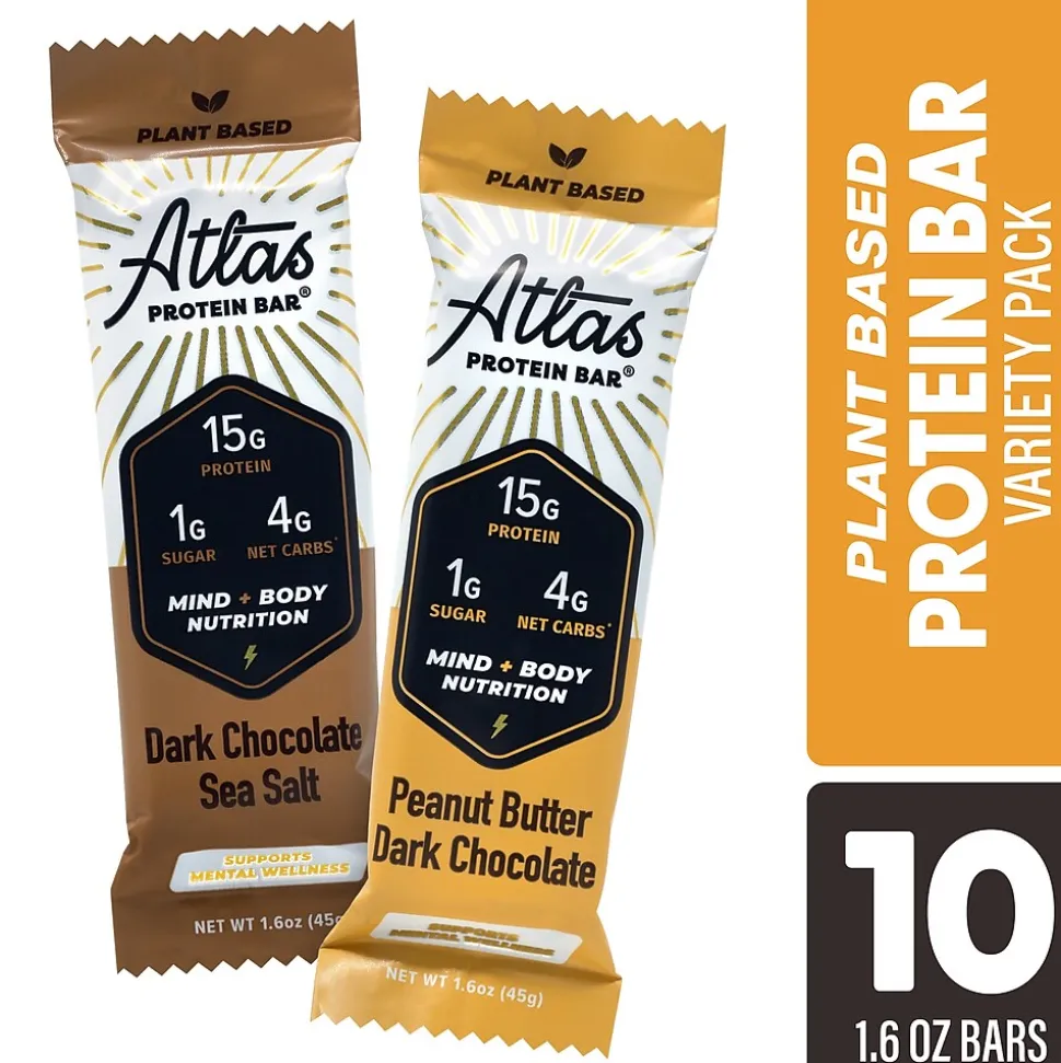 Atlas Plant Based Protein Bar Variety Pack, 1.6oz, 10 Ct