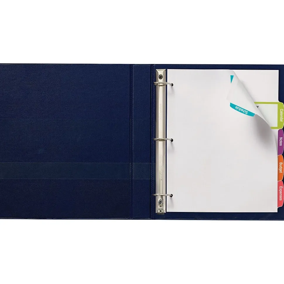 Create customized dividers with all the information you need, using these Large White Label Tab Dividers. The large labels extend from the arched-shaped tabs onto the divider bodies, giving ample room to add section contents, logos or designs. Simply personalize your tab labels using our free templates and designs at avery.com/print. You can print your labels in black and white, or create a custom color set, using a laser or inkjet printer. The print-to-the-edge Easy Peel(R) labels, featuring our Pop-Up Edge(R), make it fast and simple to personalize your tabs, with no inserts required. You simply bend back the label sheet, peel your label and apply to the divider tabs. A bonus standard label sheet is included for the back of your tabs.
