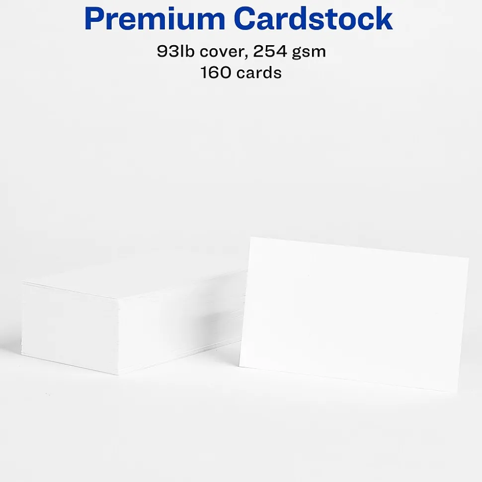 Ensure your employees get professional quality business cards without having to pay the professionally printed price. Avery 8869 Clean Edge Business Cards includes 160 customizable business cards made from premium cardstock with a weight of 93lbs / 254gsm, and offers an impressively substantial look and feel. If you need customized business cards, customer loyalty cards, appointment reminder cards or more, these 2″ x 3.5″ cards are an exceptional way to stand out from the crowd. Create eye-catching designs right to the edge of the card with the Print-to-the-Edge feature that allows for full-bleed printing with no borders or margins. These white business cards have innovative Clean Edge technology for quick and easy separation, giving you the cleanest, smoothest edges of any business card on the market. Also, proprietary Avery Sure Feed technology helps reduce misalignments, minimize paper jams, and avoid wasted projects when printing on your inkjet printer.Whether you have your own design or you’re creating one from scratch, take your brand or business to the next level with Avery Design & Print Online, which makes it easy to create and print double-sided customizable cards from your own home or business. The free browser-based software has everything you need to design business thank you cards, appointment cards, reward cards and more. Try it out today on the Avery website and print at home or in the office on your inkjet printer.