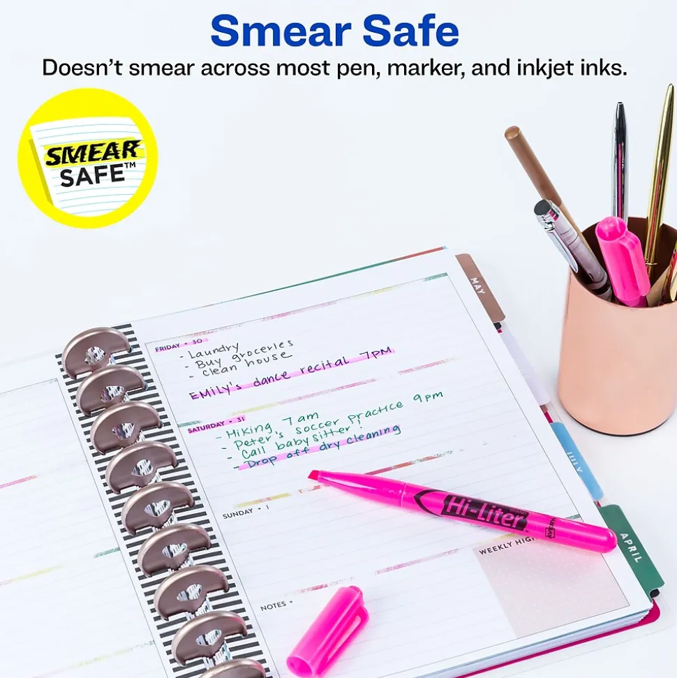Help important information stand out on the page with these pen-style highlighters. The chisel tips let you underline text or mark entire passages, and the bright pink color captures your attention as you review notes and reading materials. With rounded barrels, these Avery Hi-Liter highlighters offer a comfortable grip.