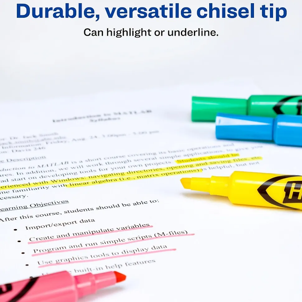 - Bring attention to essential words and phrases with Avery Hi-Liter Desk-Style Highlighters