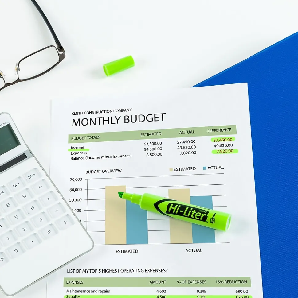 Take note of critical points with these desk-style highlighters. The chisel tips let you select between underlining or highlighting, and the fluorescent green color stands out on the page. With large, round barrels, these Avery Hi-Liter chisel-tip highlighters fit comfortably in hand.