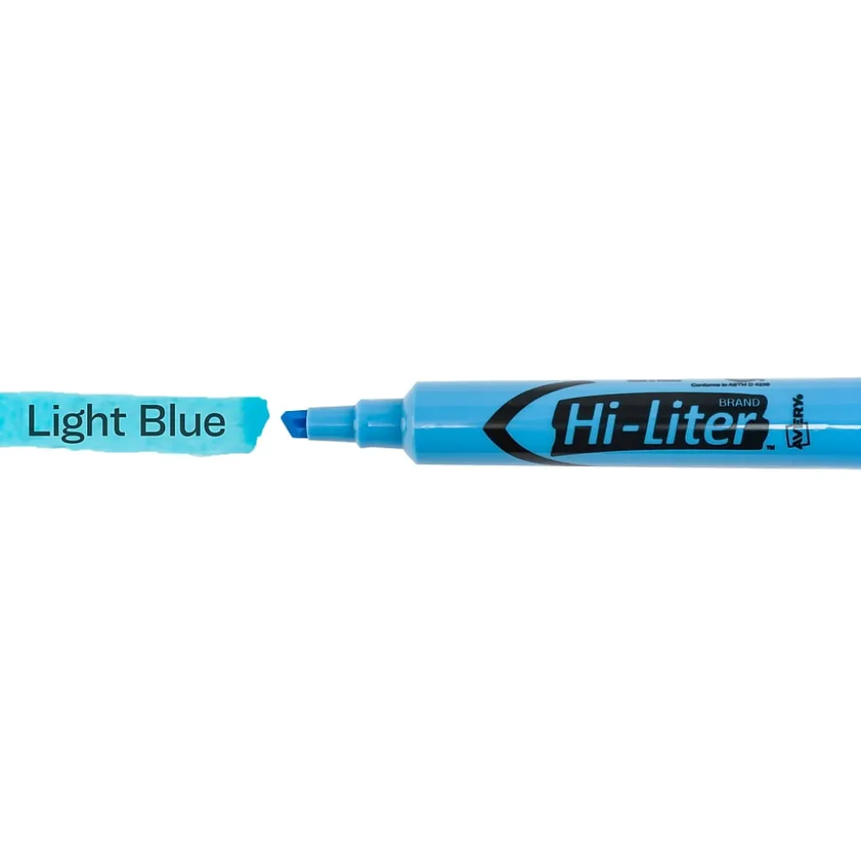 Underline or cover text with this desk-style highlighter. The chisel tip lets you create fine lines or broad strokes, and the light-blue hue makes it easy to color-code concepts and data. This Avery Hi-Liter chisel-tip highlighter features nontoxic ink, so it’s ideal for use in classrooms or offices.
