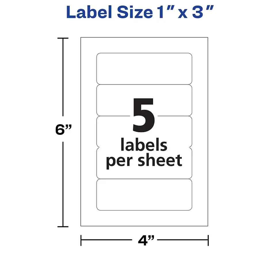 - Five 1″ x 3″ labels are included on each 4″ x 6″ sheet