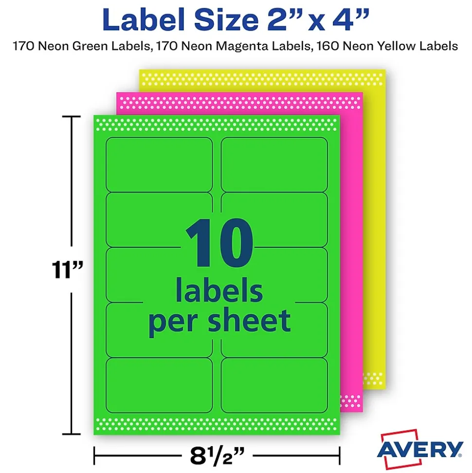 - Print your neon Avery labels without any jams or misalignments using Avery Sure Feed technology