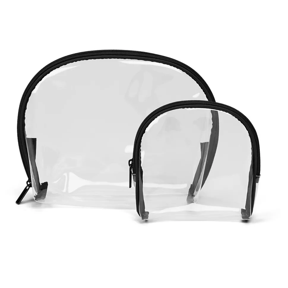 Clear and lightweight, this Basics two-piece round top set makes a stylish statement. Both bags have spacious main compartments to keep all your essentials, from makeup to your wallet to toiletries, neatly arranged and accessible. Fashioned from durable material, each bag has a sturdy coil zipper with a metal puller that closes securely. And because these bags are clear, it’s easy to see any items you need to grab in a pinch. Great for getaways or keeping organized at home.