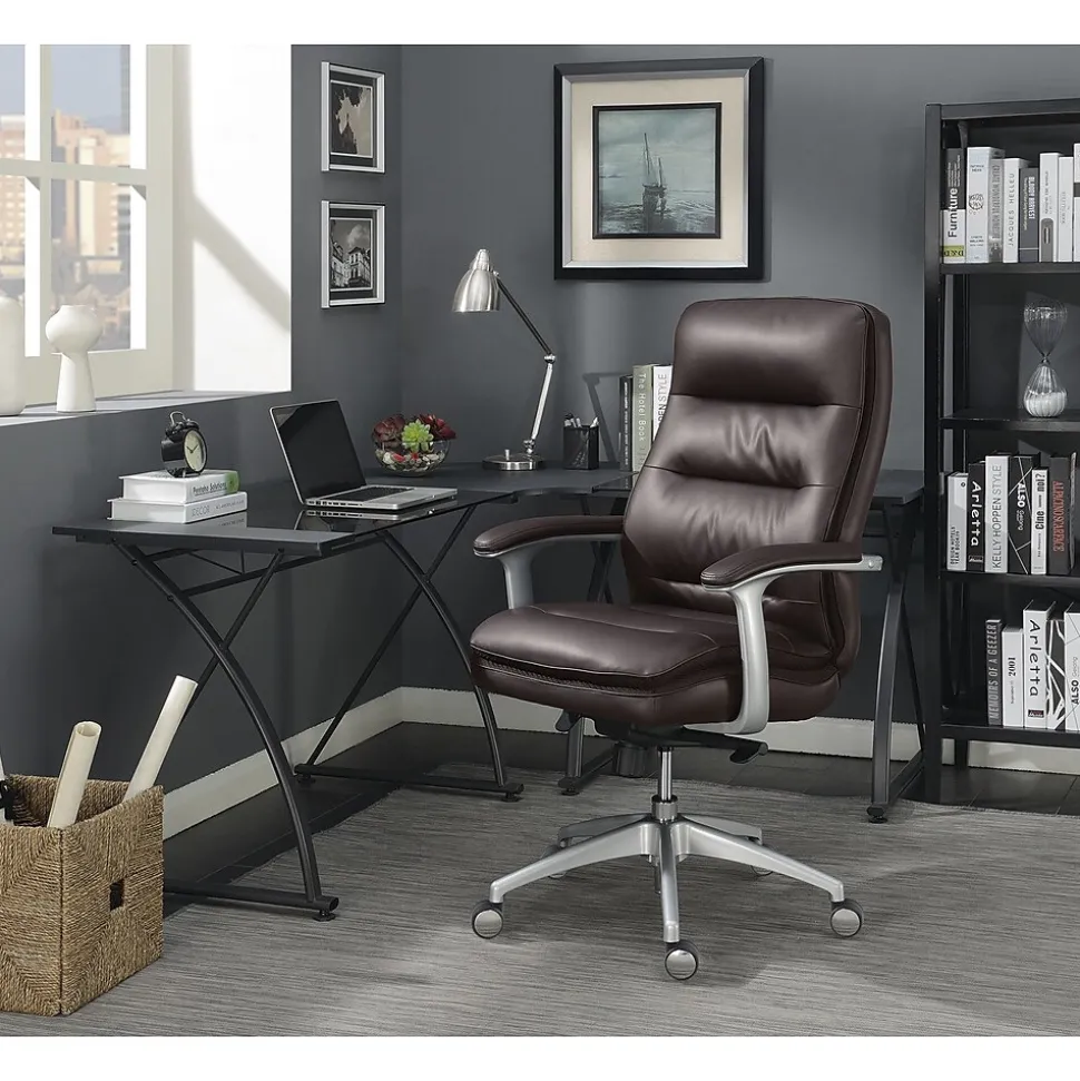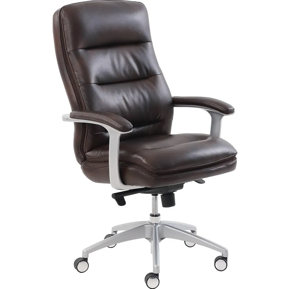 - High-Back desk chair with deep layered body pillows and contoured lumbar support zone