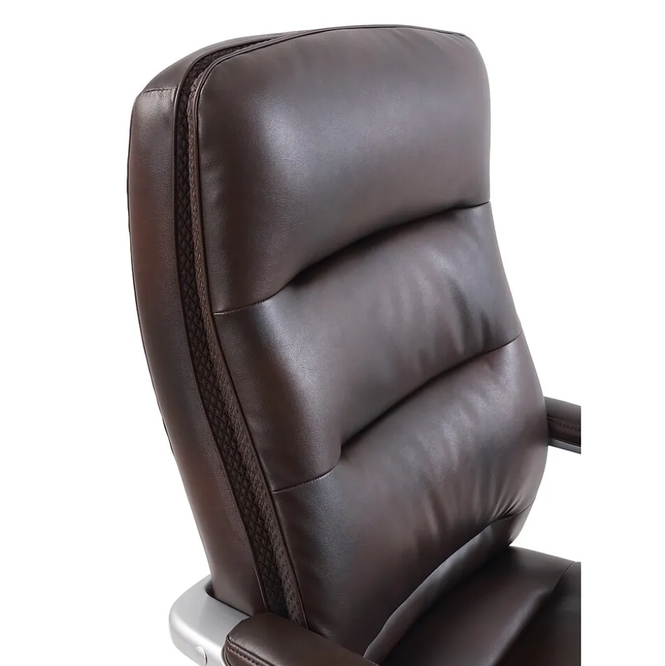 Enjoy all day comfort and premium lumbar support with this high back leather office chair. Our advanced memory foam layering system offers hours of lasting comfort and support while working or gaming. Premium pocketed coil technology offers advanced spring support for ergonomic seated comfort. Cool gel memory foam conforms to you while offering additional cooling, while fiber layers help to dissipate heat and promote airflow. A supportive headrest on this chair works with the mid-back lumbar contouring and layered body pillows to encourage better posture while sitting. From its expert craftsmanship and innovative design to its superior style, this modern office chair offers both an exceptional chair and an ergonomic sitting experience.