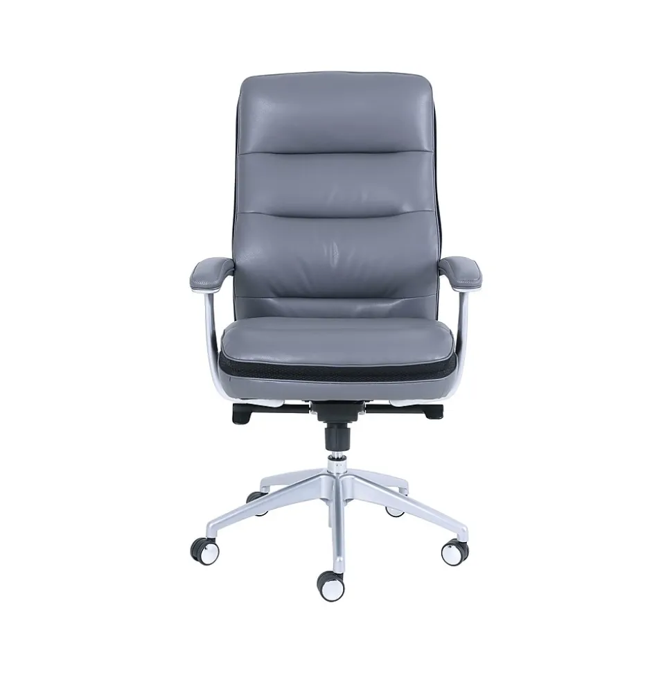 Enjoy all day comfort and premium lumbar support with this high back leather office chair. Our advanced memory foam layering system offers hours of lasting comfort and support while working or gaming. Premium pocketed coil technology offers advanced spring support for ergonomic seated comfort. Cool gel memory foam conforms to you while offering additional cooling, while fiber layers help to dissipate heat and promote airflow. A supportive headrest on this chair works with the mid-back lumbar contouring and layered body pillows to encourage better posture while sitting. From its expert craftsmanship and innovative design to its superior style, this modern office chair offers both an exceptional chair and an ergonomic sitting experience.