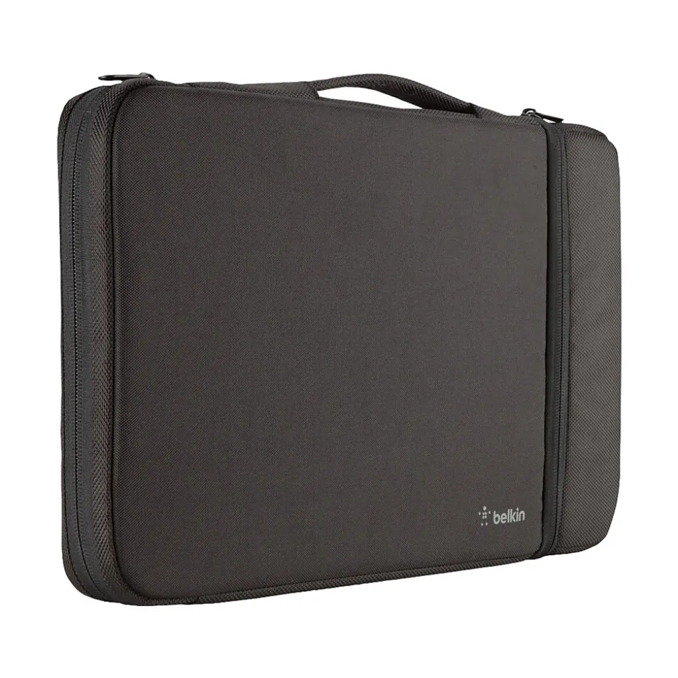 The Belkin Air Protect sleeve is a secure and lightweight case that provides protection to your Chromebook or laptop whenever you use it at school or in the office. By using this protection case, you can minimize the potential damage that your device may incur. The sleeve features a durable padded exterior that protects a laptop or Chromebook from daily wear and tear. Shock-absorbing stiffeners on all six sides safeguard the device against accidental damage from drops and dings. This lightweight sleeve comes with a retractable carrying handle and slips easily inside a backpack for easy portability. A convenient bottom pocket, separate from the laptop compartment, safely stores a charger and other accessories without damaging the laptop or Chromebook.