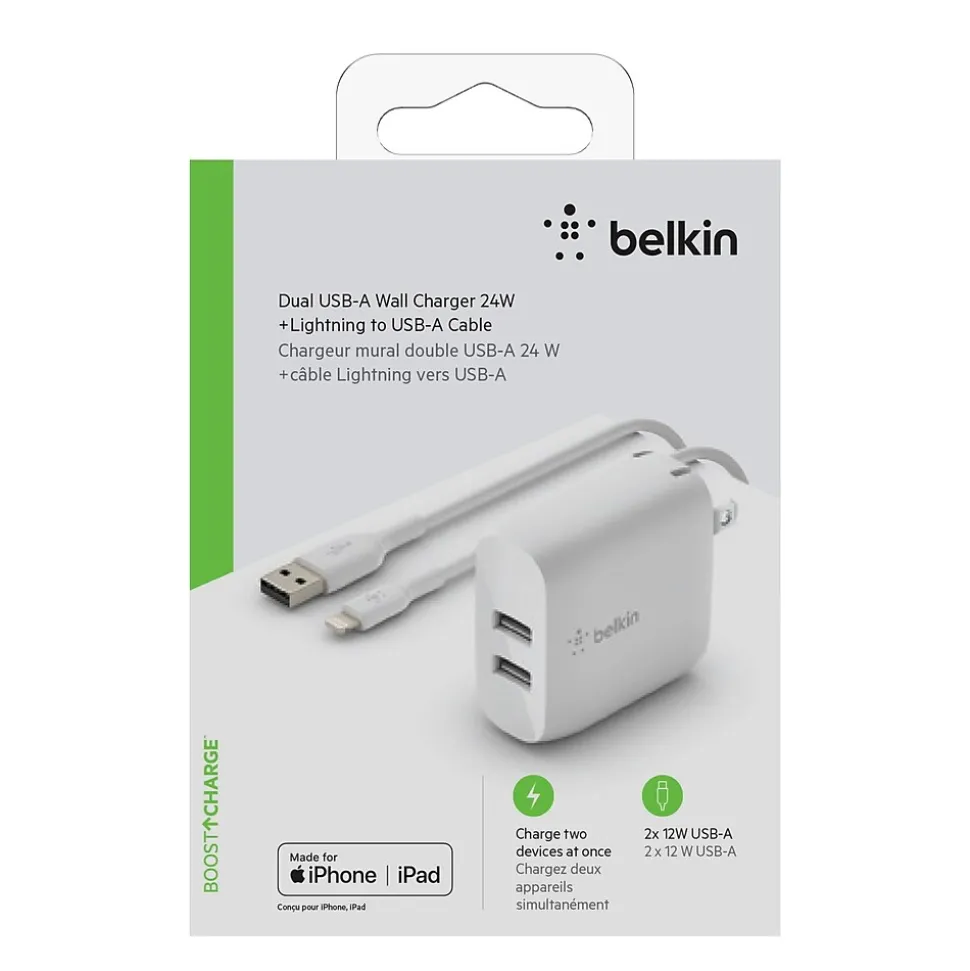 The BOOST↑CHARGE Dual USB-A Wall Charger allows you to conveniently charge two phones, power banks, or tablets at the same time. It’s perfect when multiple devices need a charge and space is limited.