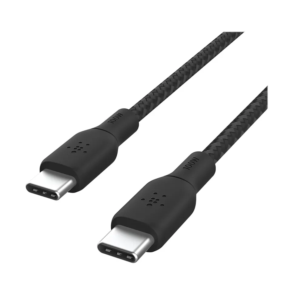 Connect your USB Type-C device to safe, fast power with the Belkin extra-long and durable USB Type-C to USB Type-C cable. USB-IF certified​, the cable supports up to 100W charging power and 480Mbps transfer speeds for a MacBook Pro, Chromebook, PC laptop, iPad, and more. The cable features a double-braided exterior that’s tested to survive over 30000 bends, meaning it’s built to last.