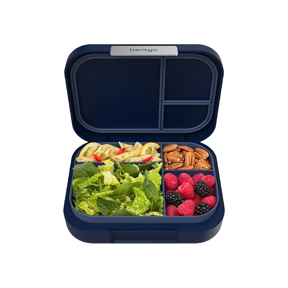The Bentgo Modern lunch box gives healthy eating on the go a stylish makeover. Designed to turn heads in the office break room, the versatile three- or four-compartment bento-style lunch box features a contoured outer shell with a sleek matte finish, held tightly closed with a shiny metallic clip. Leak-resistant, the removable tray is microwave- and dishwasher-friendly, making eating and cleanup a breeze. Eating healthy has never looked so good.