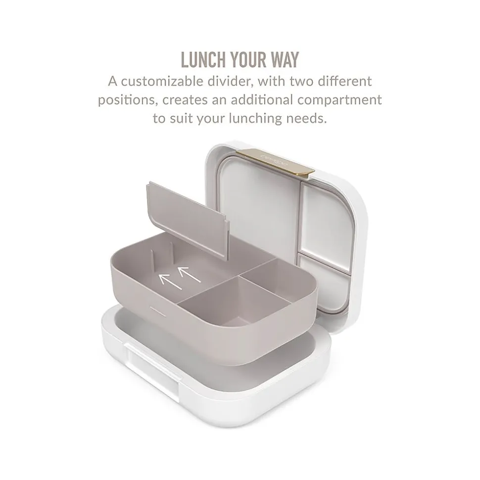 The Bentgo Modern lunch box gives healthy eating on the go a stylish makeover. Designed to turn heads in the office break room, the versatile three- or four-compartment bento-style lunch box features a contoured outer shell with a sleek matte finish, held tightly closed with a shiny metallic clip. Leak-resistant, the removable tray is microwave- and dishwasher-friendly, making eating and cleanup a breeze. Eating healthy has never looked so good.