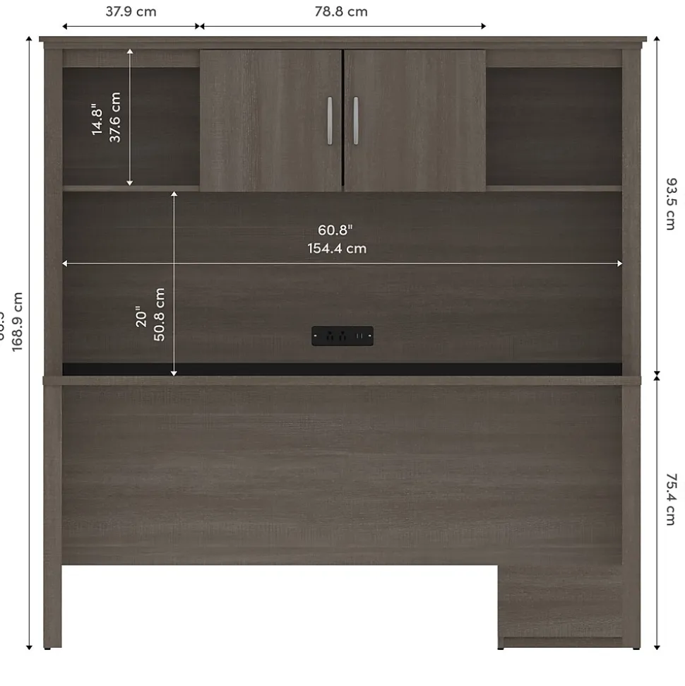 - Hutch has a power bar with 2 power outlets and 2 USB ports to charge electronics and a rubber wire management strip is included to hide cables and wires