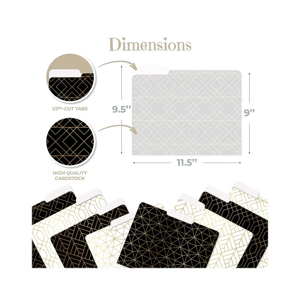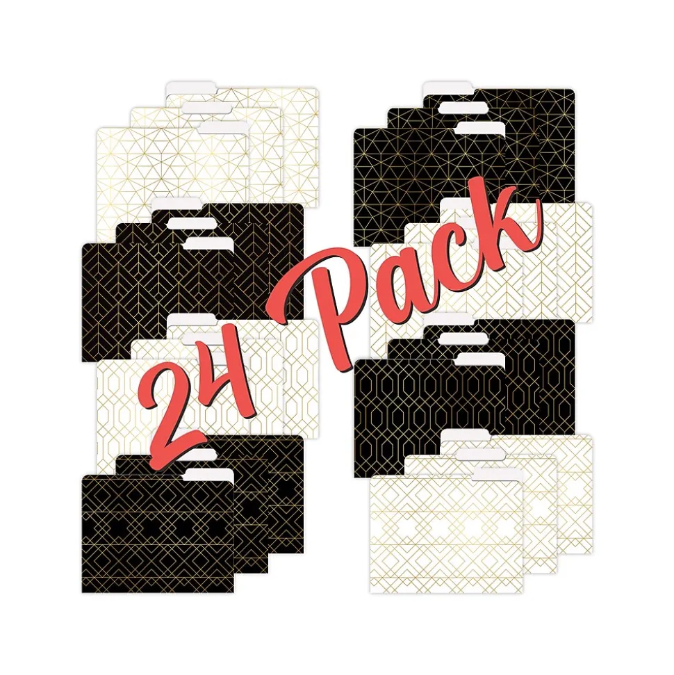 Better Office Geometric Gold Foil Heavyweight File Folders, 1/3-Cut Tab, Letter Size, Assorted Colors, 24/Pack (80021-24PK)
