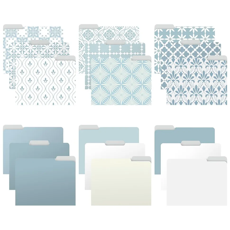 Better Office Soft Floral Tile Heavy-Duty File Folders, 1/3-Cut Tab, Letter Size, Paper Stock, 18/Pack (80033-18PK)