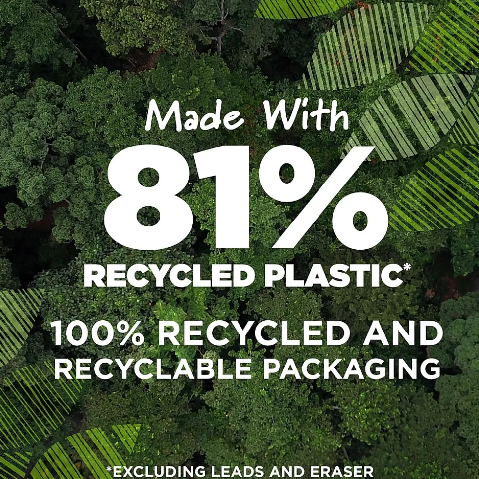- Each mechanical pencil is made from 81% recycled plastic excluding leads and erasers and the paperboard packaging is made of 100% recycled content and is recyclable