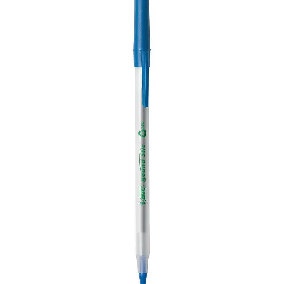 - One package contains 50 BIC Ecolutions Round Stic Blue Ballpoint Pens
