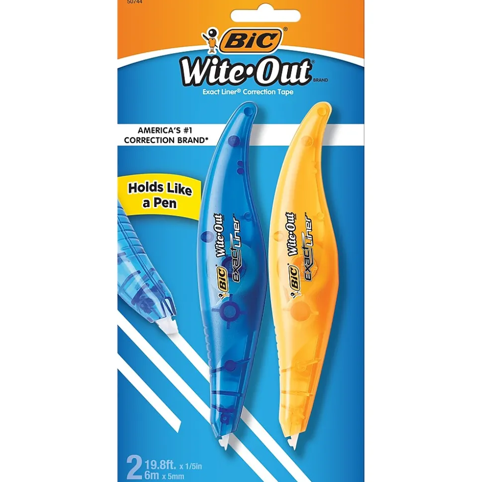 Fix errors on contracts, letters and other documents easily with these correction tapes. The natural shape and grip zone produce a comfortable hold and provide enhanced control, while the tear-resistant tape gives corrections a clean, unnoticeable appearance. These BIC Wite-Out Exact Liner correction tapes have a dry application for quick overwriting and are compact, so you can bring them on the go.