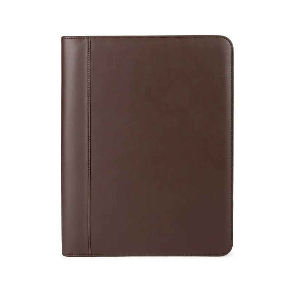 - Stylish brown vegan leather padfolio holds everything you need and provides a professional look