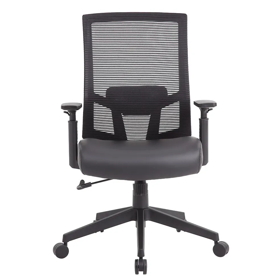 The Boss breathable mesh back task chair is designed with comfort and ease in mind. The seat cushion is upholstered in durable and cleanable antimicrobial vinyl to prevent bacterial growth on the chair’s seat. The chair features a 2:1 synchro-tilt mechanism for added comfort. This allows the backrest and seat to tilt in unison, and the included tilt tension knob allows you to adjust the tilt tension for optimal support. The chair also features height-adjustable arms, a pneumatic gas lift that allows for easily adjustable height, and a maximum weight capacity of 275 lbs. Also boasts a 27″ nylon base and 2″ hooded double-wheel casters.