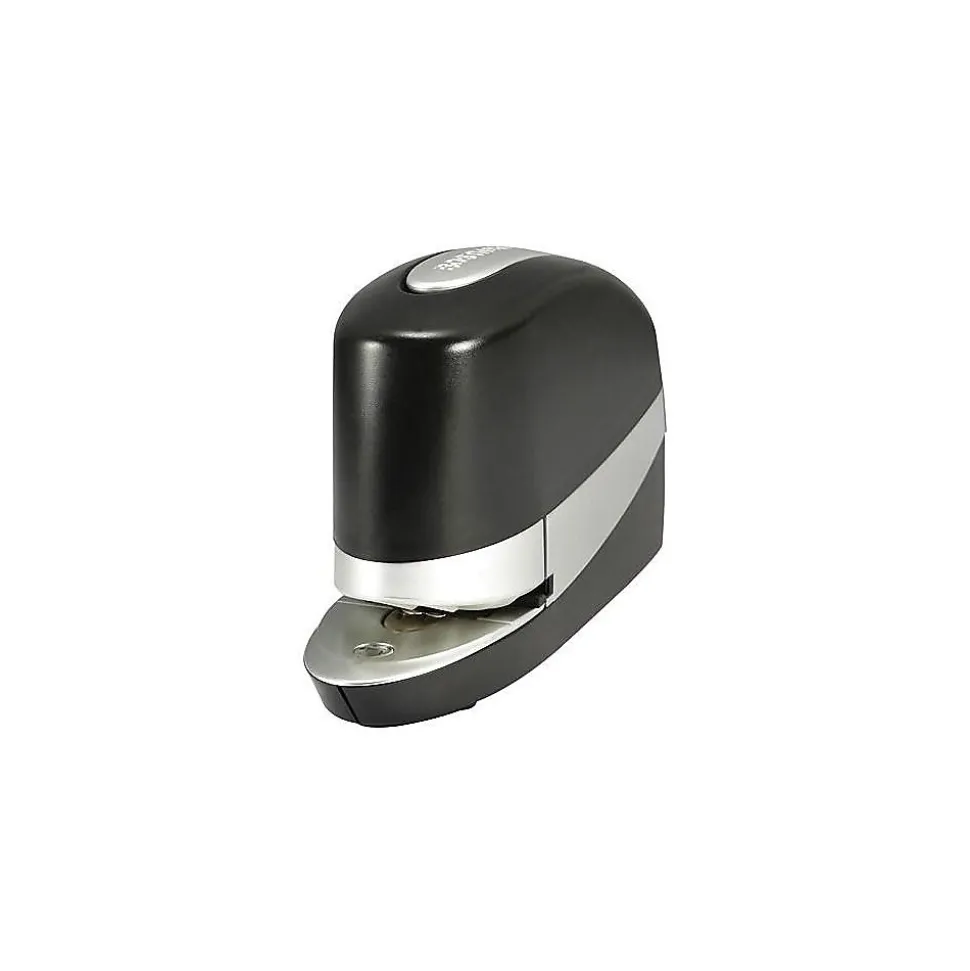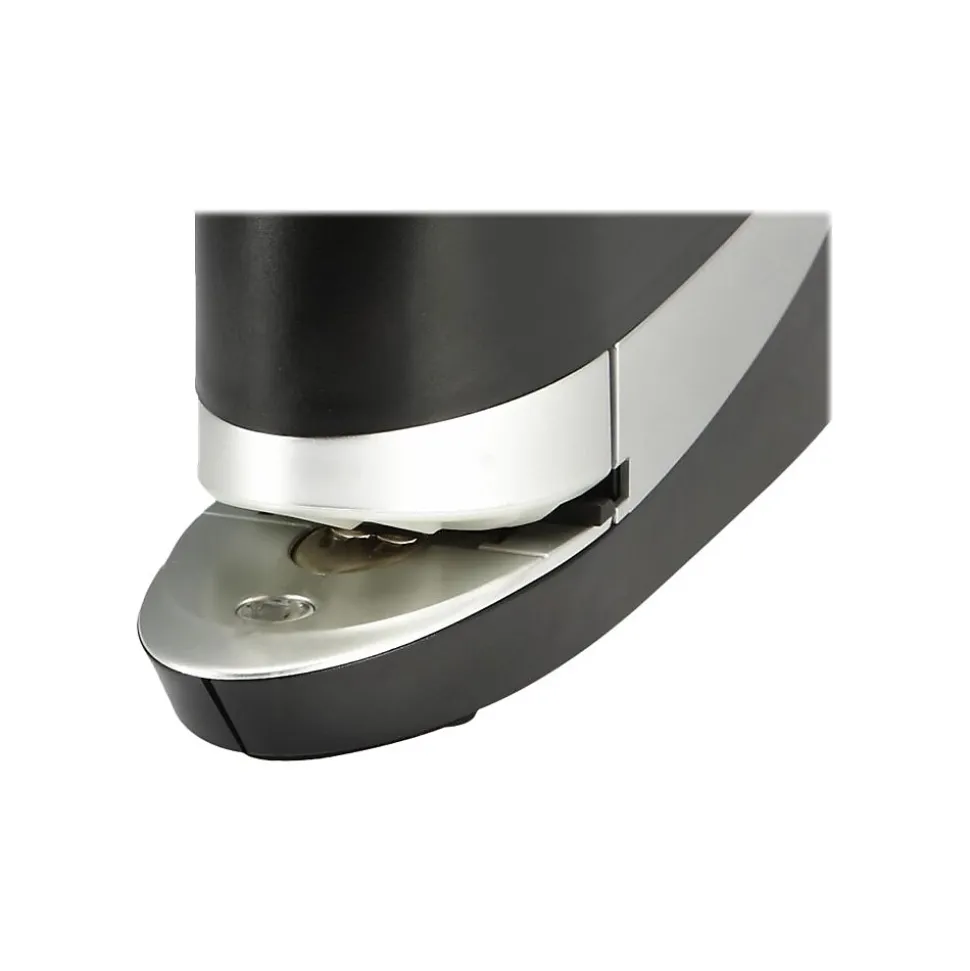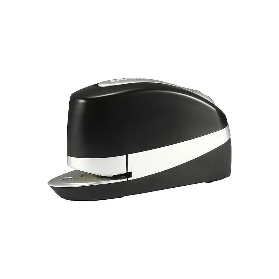Expand your stapling horizons with speed and style. This attractive electric stapler is packed with all the necessary features. Optical trip firing mechanism provides fast stapling and Anti-Jam floating core eliminates frustrating staple jams. Extra wide lead-in and adjustable paper stop ease the stapling experience and help place the staple exactly where needed. Will staple at normal right angle or at 45 degrees. Stapling tray holds an additional four strips of staples