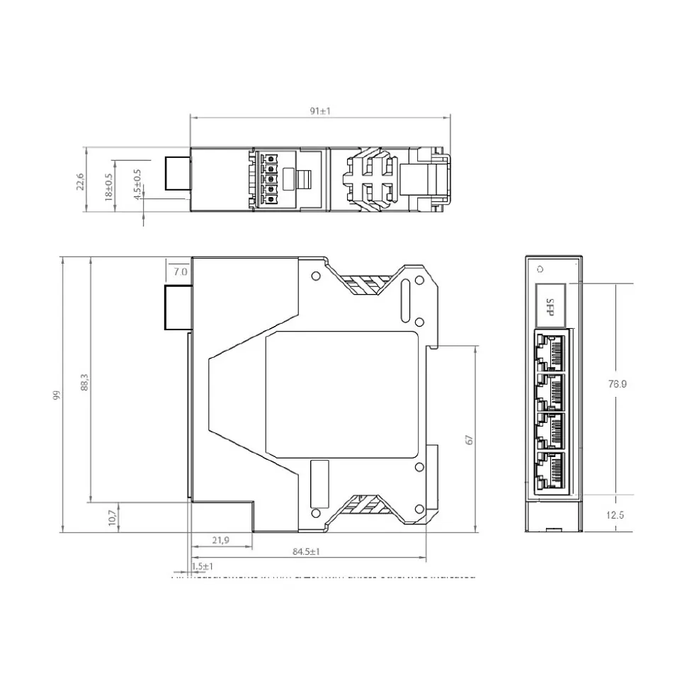 - Unmanaged switch with 4 x gigabit Ethernet, and 1G SFP ports