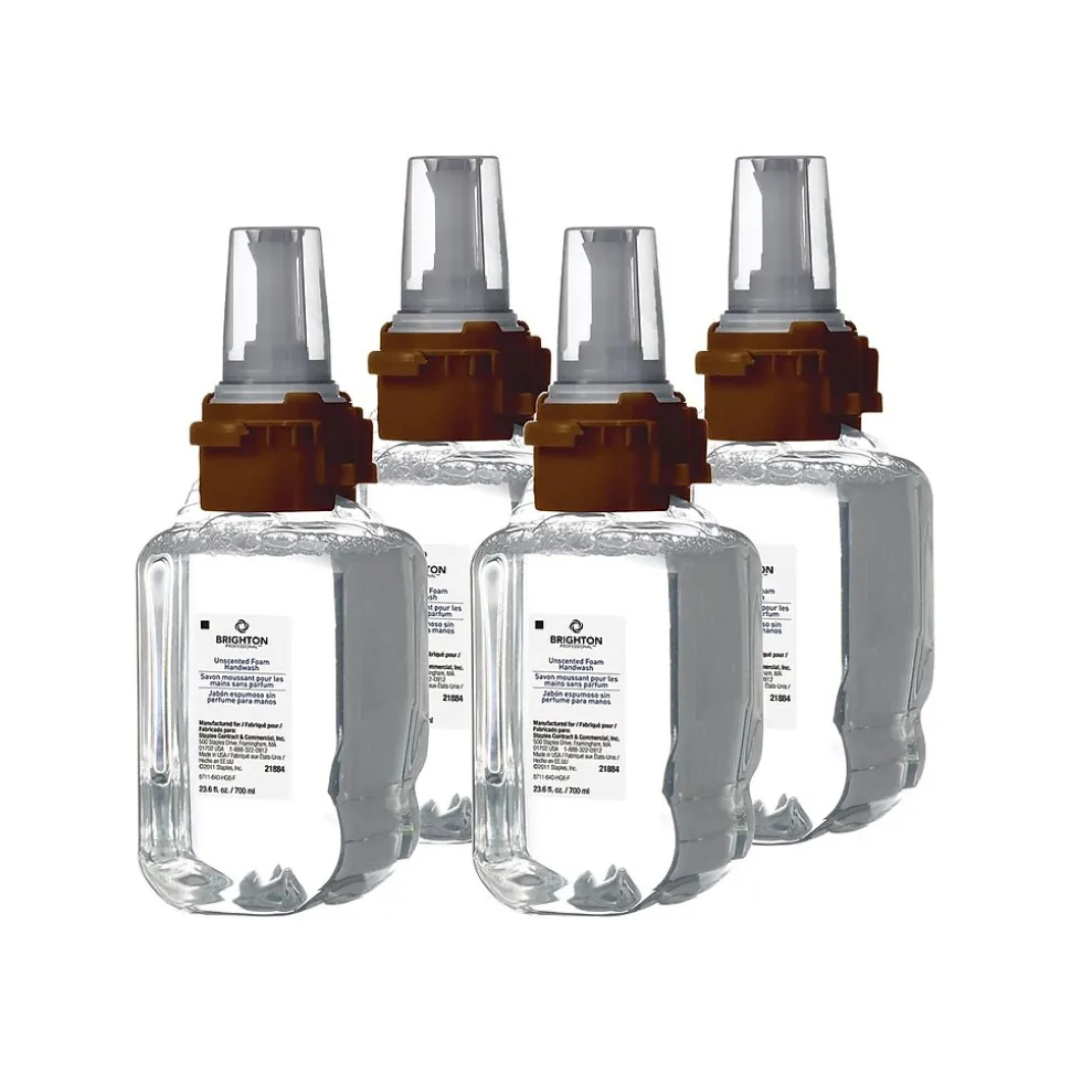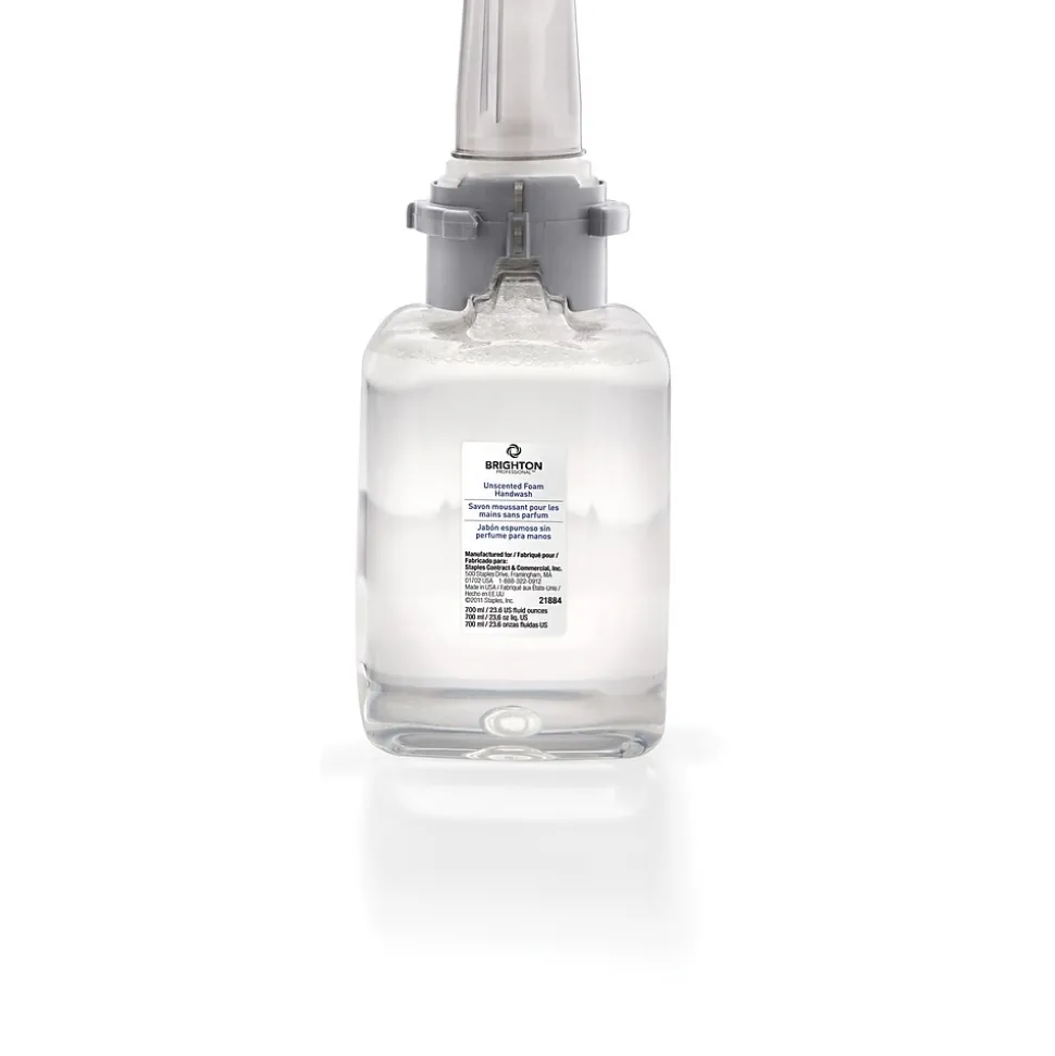 Wash away dirt and bacteria with these foaming hand wash refills. Each refill in this 4-pack features a mild and gentle formulation that is enriched with moisturizers and natural extracts to condition skin as it cleanses. This foaming hand wash produces a rich lather for a thorough clean, while the unscented formula is safe for sensitive skin. These Brighton Professional foaming hand wash refills fit 700-milliliter dispensers and are perfect for use in high-traffic handwashing areas.