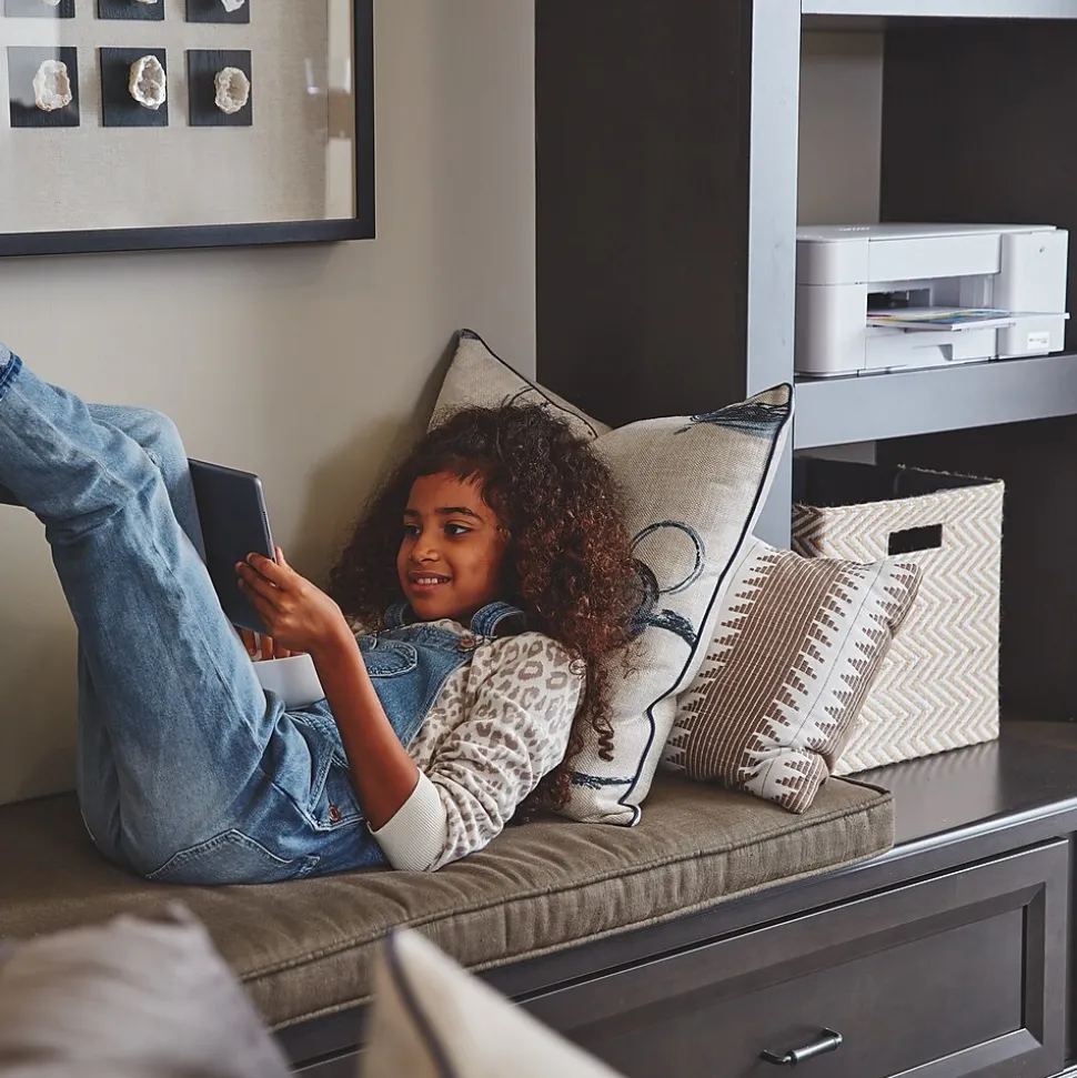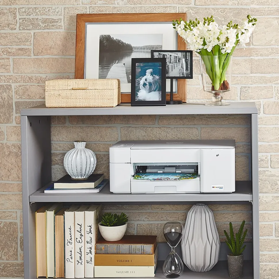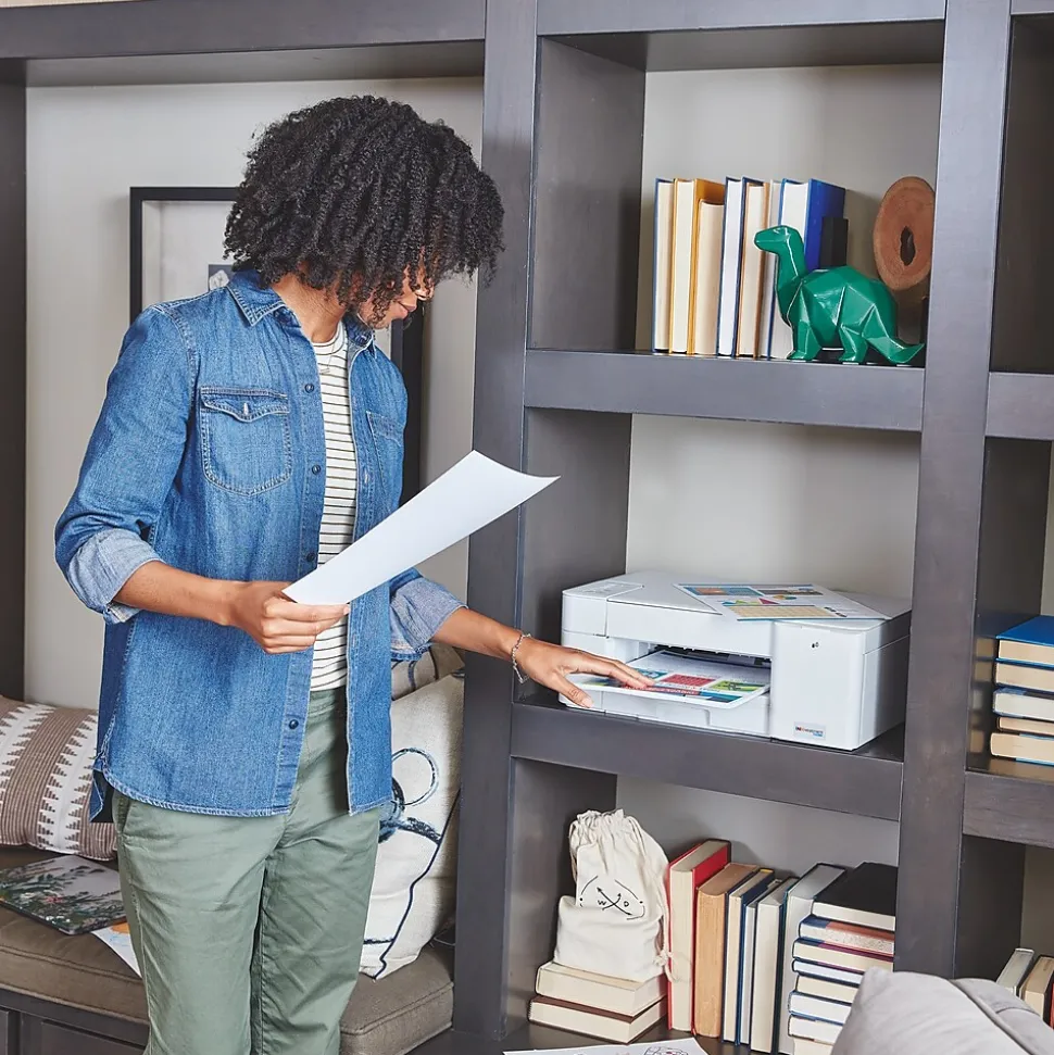Brother INKvestment Tank MFC-J1205w wireless multifunction color inkjet printer is sleek, compact, and very affordable. This revolutionary printer features re-engineered high-capacity ink cartridges that provide up to one year of uninterrupted printing using only the cartridges included in-box. Print, copy, and scan features can be accessed from your mobile device through the Brother Mobile Connect app. Brother Mobile Connect has a user-friendly interface that gives you the freedom to print from virtually anywhere and always have access to the status of your printer’s ink usage. Brother Intelligent Page Gauge is a feature that can be accessed through the app, providing a visual, numerical way to know the amount of ink you’ve used and the amount of ink you have remaining. This wireless printer has multiple flexible connection options, including a built-in wireless interface for sharing with multiple users on your network, Wi-Fi Direct, or connect it locally to a single computer via a USB interface. The printer is easy-to-use, features a clean, modern design, offers quick setup and convenient optional printing via AirPrint and/or Email Print. When you need a reliable color inkjet printer at an affordable price to keep pace with your home or home office document needs, Brother INKvestment Tank MFC-J1205W is the printer for you. Includes a 2-year limited warranty with free online, live chat, or phone support for the life of your printer.