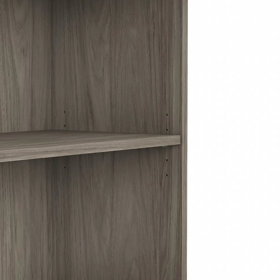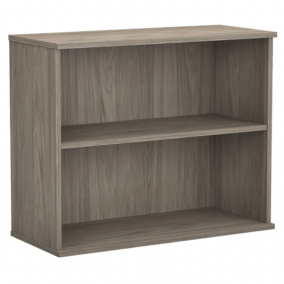 Keep work materials organized and accessible while conveying a classic, professional appearance with the Bush Business Furniture small two-shelf bookcase. Use the shelves to store books, reference materials, and supplies, or give your office a personal touch with pictures and decorations. One shelf is fixed for stability, and the other can be raised or lowered to accommodate items of various sizes. Each shelf supports up to 50 lbs., so storing larger materials is no problem. The efficient design and commercial-quality construction of this low bookcase make it an ideal storage and display solution for home and professional offices alike. A stable design and included wall attachment hardware provide peace of mind in every work environment. This small bookcase has been tested to meet ANSI/BIFMA quality standards for safety and performance and is backed by a 10-year manufacturer warranty.