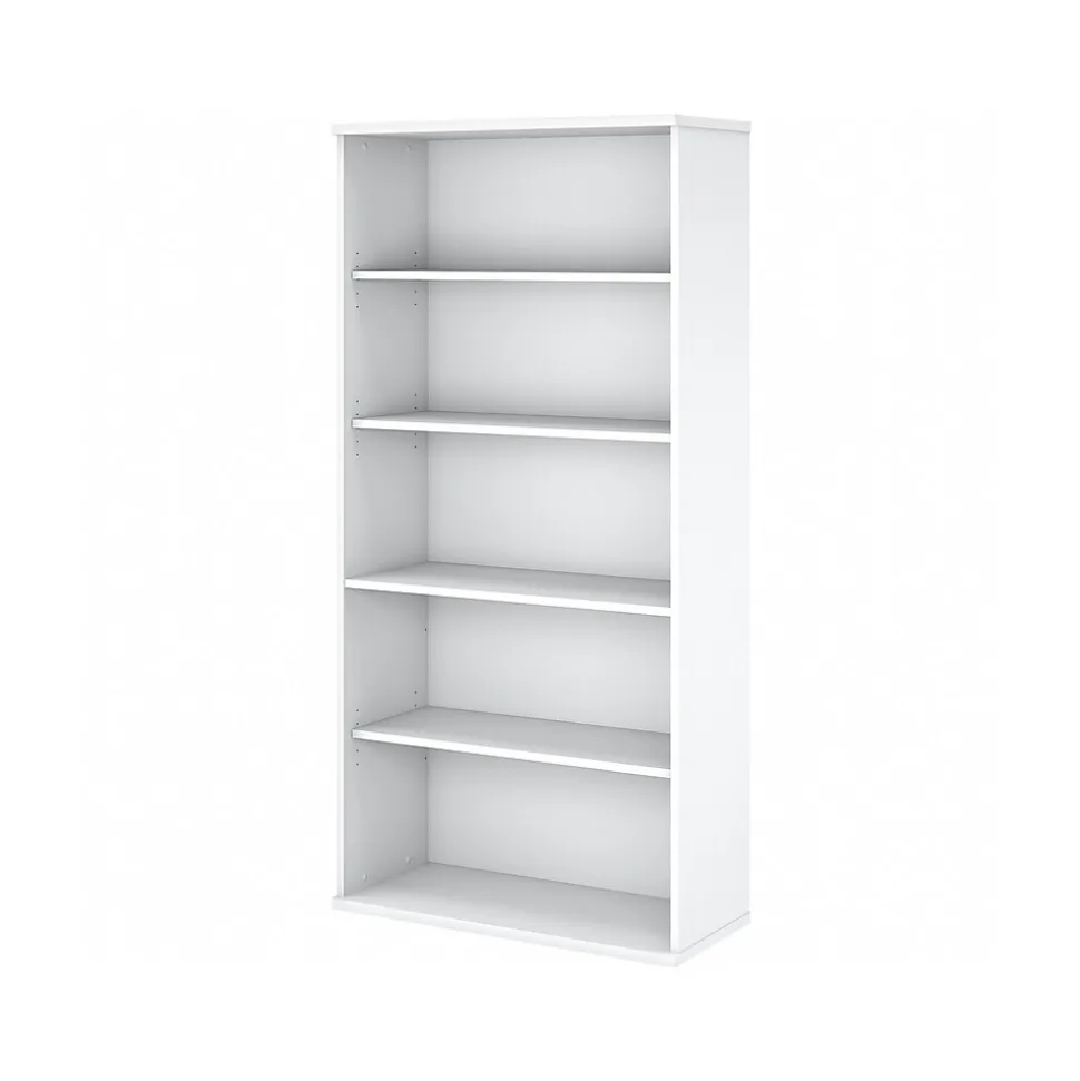 Maintain an organized workspace with the Bush Business Furniture Easy Office five-shelf bookcase. Three adjustable shelves move up and down to accommodate books and binders of various sizes, while two fixed shelves provide stability. Each shelf supports up to 50 lbs., so storing larger items is no problem. Use the tall bookshelf to keep important reference materials in order or give your office a personal touch by displaying pictures and decorations. The lower portion of the bookcase accepts a coordinating door kit (sold separately) that covers two bottom shelves to conceal any supplies or materials you want to be hidden from view. Find the perfect look for any space with traditional and contemporary finish options. This modern bookshelf is tested to meet ANSI/BIFMA quality standards for safety and performance and is backed by a 10-year manufacturer limited warranty.